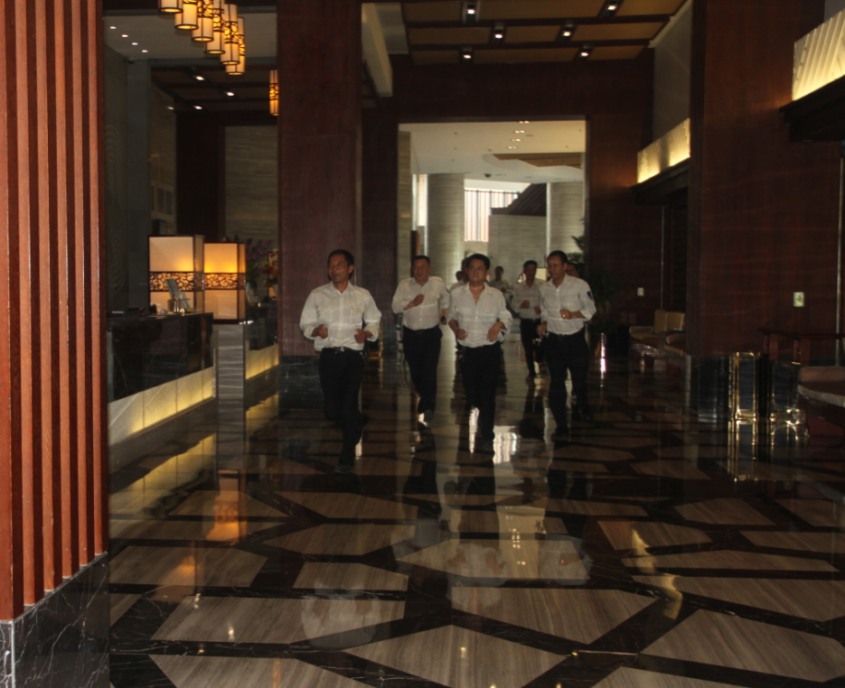 下午2點45分,酒店響起“著火”警報,酒店全體人員在安保人員的指揮和帶領(lǐng)下,迅速而有序的從安全通道撤離,沒有出現(xiàn)擁擠、踩踏、碰傷等安全事故,人員到達目的地后,快速整隊并核查人數(shù),整個應(yīng)急演練活動規(guī)范、有序、緊湊、安全、高效,真正做到了“忙而不亂 慌而不驚”。
