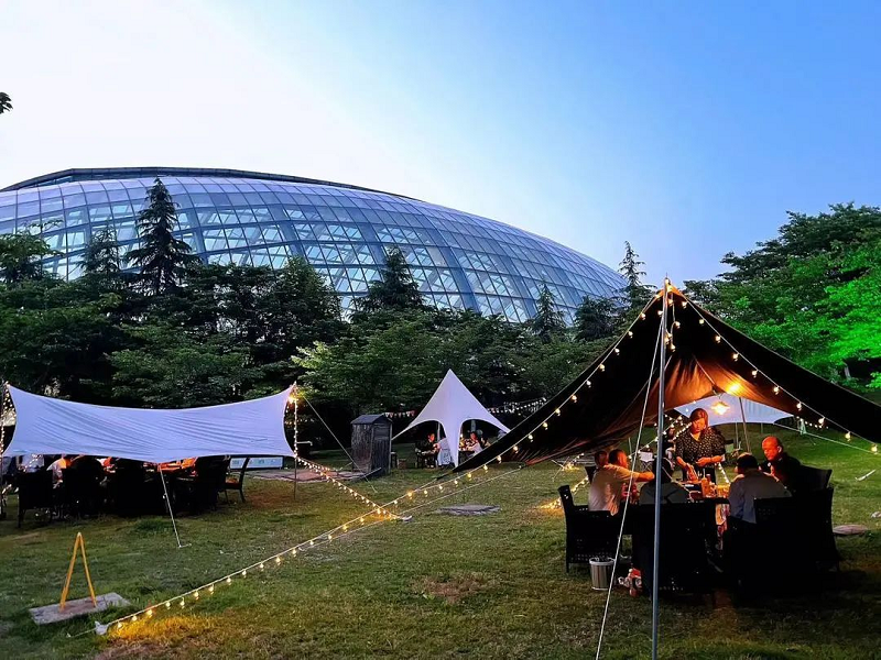 另一邊的星空露營基地,戶外野趣讓浪漫升級?;貎?nèi)設(shè)有K歌區(qū)、鐵板燒區(qū)、燒烤區(qū)等,無論是家庭聚會、情侶約會還是朋友小聚,都能在這里找到屬于自己的樂趣。此外,基地還推出了圍爐煮茶、圍爐煮蟹、柴火夜市等特色活動,讓游客在享受自然之美的同時,也能品嘗到地道的洪湖風(fēng)味。