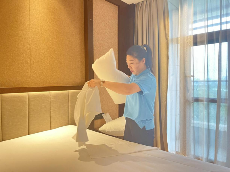 客房服務(wù)中心的工作人員,仔細(xì)整理床鋪,將每一個(gè)褶皺撫平,把房間的角落打掃得一塵不染。他們精心布置著房間,為賓客營(yíng)造出溫馨的歸家之感。