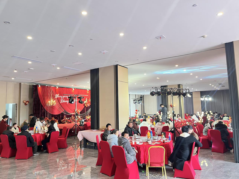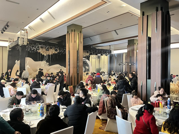 當(dāng)天,酒店內(nèi)處處洋溢著喜慶的氛圍。紅燈籠、中國結(jié)、新年窗花紙、鮮花裝飾等,將各個(gè)婚宴廳裝點(diǎn)得格外喜慶。每對(duì)新人都身著盛裝,臉上洋溢著幸福的笑容,與親朋好友們一同分享這人生中最重要的時(shí)刻。酒店工作人員也有條不紊的忙碌著,他們精心準(zhǔn)備每一道菜品,用心服務(wù)每一位賓客,確?;檠绲拿恳粋€(gè)環(huán)節(jié)都順利進(jìn)行。