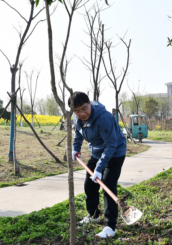 活動(dòng)現(xiàn)場(chǎng),大家個(gè)個(gè)熱情高漲、干勁十足,三五人一組,分工合作,配合默契。一個(gè)個(gè)樹(shù)坑的挖成,一棵棵樹(shù)苗的栽下,象征著一份份綠色的希望;每一滴汗水的流下,每一鏟泥土的填充,則代表著每一個(gè)人的奉獻(xiàn)和愛(ài)心。眾人拾柴火焰高,經(jīng)過(guò)一上午的奮戰(zhàn),大家完成了生態(tài)園園區(qū)道路兩旁近1.5公里的植樹(shù)工作,新栽種的綠化苗木構(gòu)成一道靚麗風(fēng)景線。