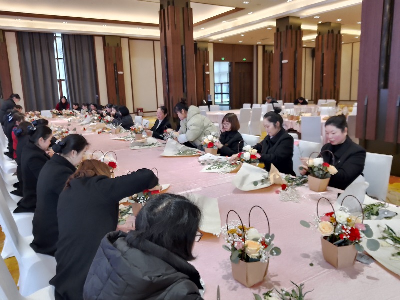 在悅兮半島片區(qū),公司組織開展以“相遇‘三八’節(jié),采摘踏青行”為主題的江灘野菜采摘活動(dòng)。女職工們相約而行,來(lái)到長(zhǎng)江邊,收獲早春的果實(shí),她們賞春踏青,采摘野菜,閑聊家常趣事……活動(dòng)氛圍輕松和諧,歡聲笑語(yǔ)此起彼伏,處處洋溢著女同胞們的青春和熱情,盡情展示“半邊天”的豪邁和風(fēng)采;在金灣片區(qū),公司組織女職工開展了“三月艷陽(yáng)天,喜迎三八節(jié)”主題慶?;顒?dòng)。聘請(qǐng)專業(yè)花藝?yán)蠋煘榇蠹医榻B了花卉知識(shí)、插花藝術(shù)、購(gòu)買鮮花常識(shí)及相關(guān)注意事項(xiàng)等,在老師的指導(dǎo)下,大家用自己靈巧的雙手,將多種花卉,修剪、整枝,再根據(jù)不同的色彩、形狀有層次地搭配在一起,一盆盆融合了女職工們豐富想象力的插花作品呈現(xiàn)在大家面前,充分展現(xiàn)了女職工們的心靈手巧。